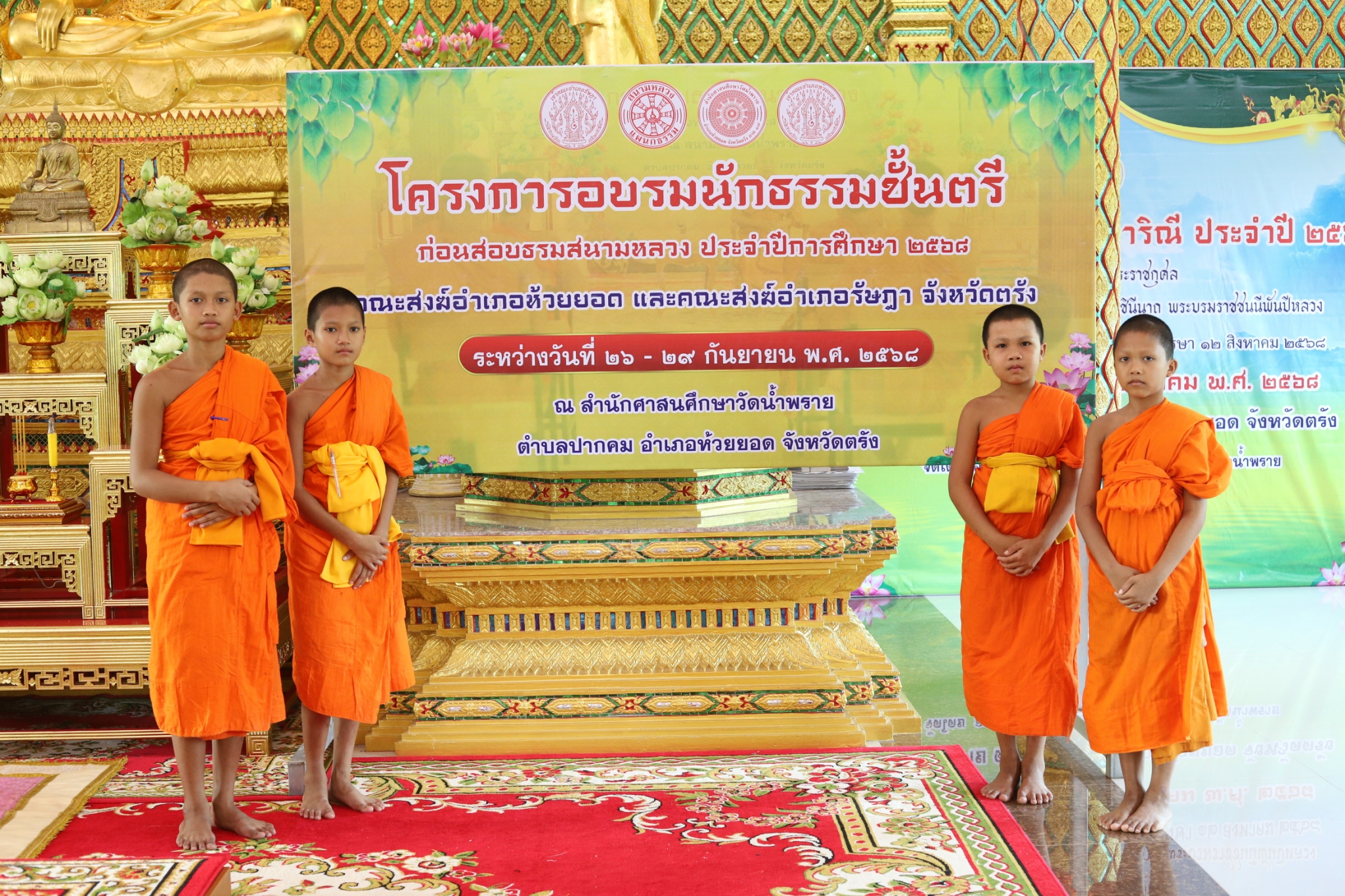 โครงการอบรมนักธรรมชั้นตรี (ก่อนสอบธรรมสนามหลวง) ประจำปีการศึกษา ๒๕๖๘ คณะสงฆ์อำเภอห้วยยอด และคณะสงฆ์อำเภอรัษฎา พระภิกษุ - สามเณร เข้าร่วมอบรม จำนวน ๘๐ รูป ระหว่างวันที่ ๒๖ - ๒๙ กันยายน ๒๕๖๘ ณ สำนักศาสนศึกษาวัดน้ำพราย ตำบลปากคม อำเภอห้วยยอด จังหวัดตรัง